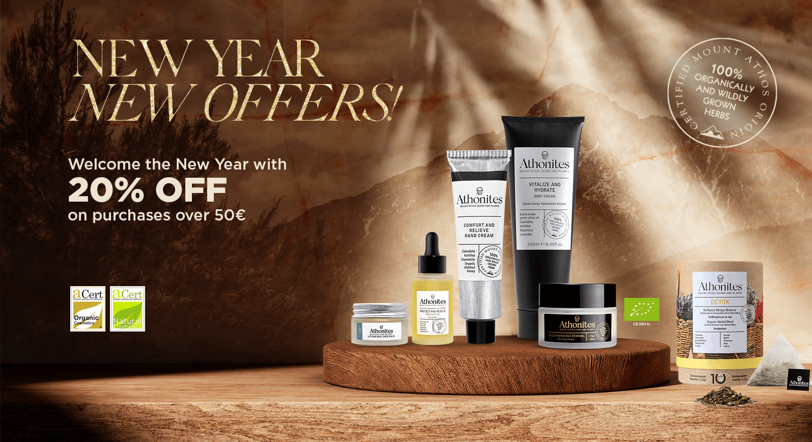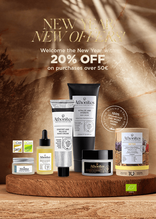 Immerse yourself in the enriching benefits of organic and natural skincare from Mount Athos. This unique region, home to a protected ecosystem and rich biodiversity is the source of Athonites formulations that transform your daily routine into a distinct beauty experience. Each plant from this sacred land is meticulously handpicked from certified organic cultivations.