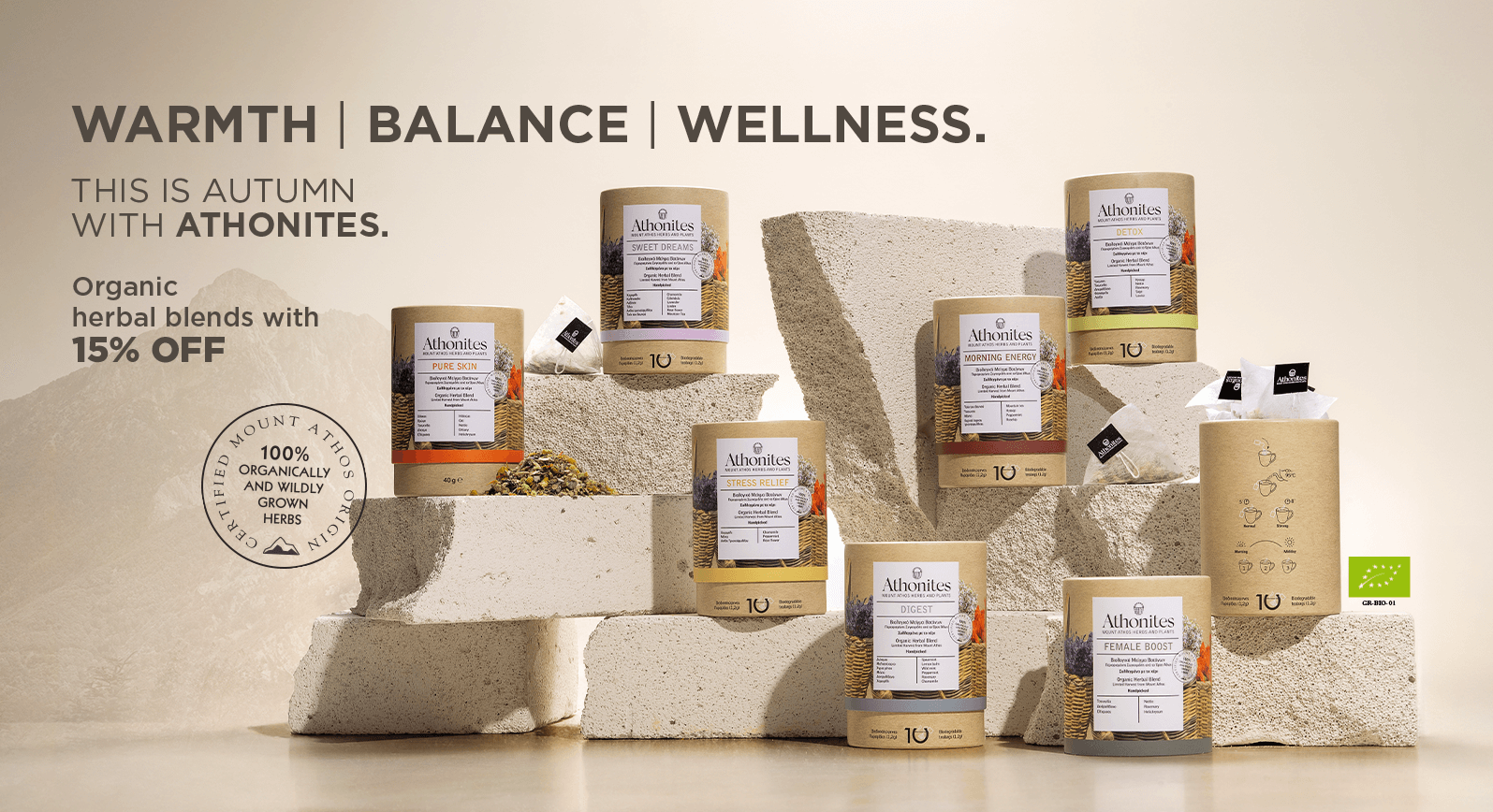 Inspired from Mount Athos, an exclusively protected and preserved ecosystem with minimum human intervention, unique microclimate and rich biodiversity we create our natural cosmetics. A unique gift of nature! Every herb and plant from Mount Athos we use for Athonites' cosmetics is hand picked and either wildly grown or organically cultivated. It is combined with safe complementary actives offering pleasant, effective and certified formulas with 84 - 100% natural origin ingredients.