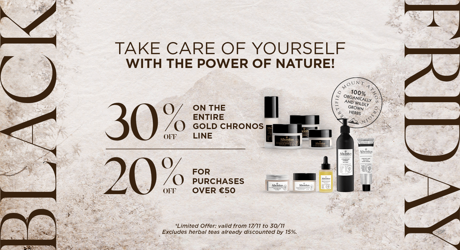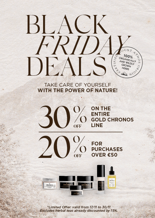 Immerse yourself in the enriching benefits of organic and natural skincare from Mount Athos. This unique region, home to a protected ecosystem and rich biodiversity is the source of Athonites formulations that transform your daily routine into a distinct beauty experience. Each plant from this sacred land is meticulously handpicked from certified organic cultivations.